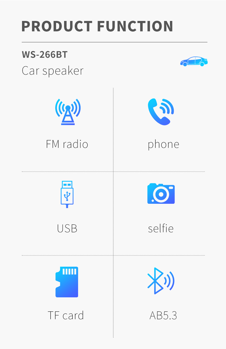 3.FM收音,USB、TF读卡;